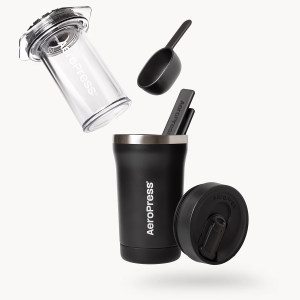The AeroPress Go Plus is the ultimate travel version of our iconic coffee press – the same patented 3 in 1 brewing technology that gives a smooth. full-bodied flavor without grit or bitterness. The included 16 oz travel tumbler is made of double wall. vacuum-insulated 18/8 stainless steel. features a splash-resistant. magnetic slider lid and built-in filter holder. and serves three purposes: brewing vessel. drinking cup. and carrying case.