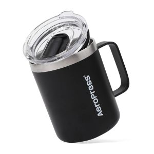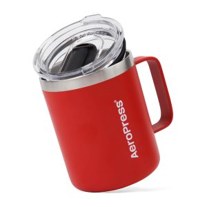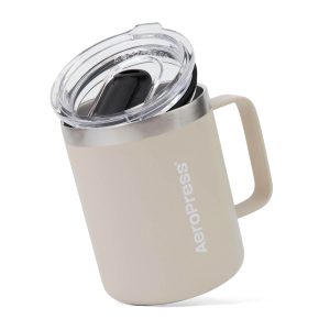 The AeroPress Travel Coffee Mug is the perfect drinking vessel for coffee lovers on the go. Made of double-wall. vacuum-insulated stainless steel. it keeps drinks at the perfect temperature. while its splash-resistant slider lid prevents spills. Designed for durability. this mug is ideal for travel. commuting. or outdoor adventures. Plus. it’s dishwasher safe. making cleanup a breeze. With a wide. stable base. it supports brewing directly with standard AeroPress coffee makers. ensuring an easy. mess-free brewing experience wherever you go.